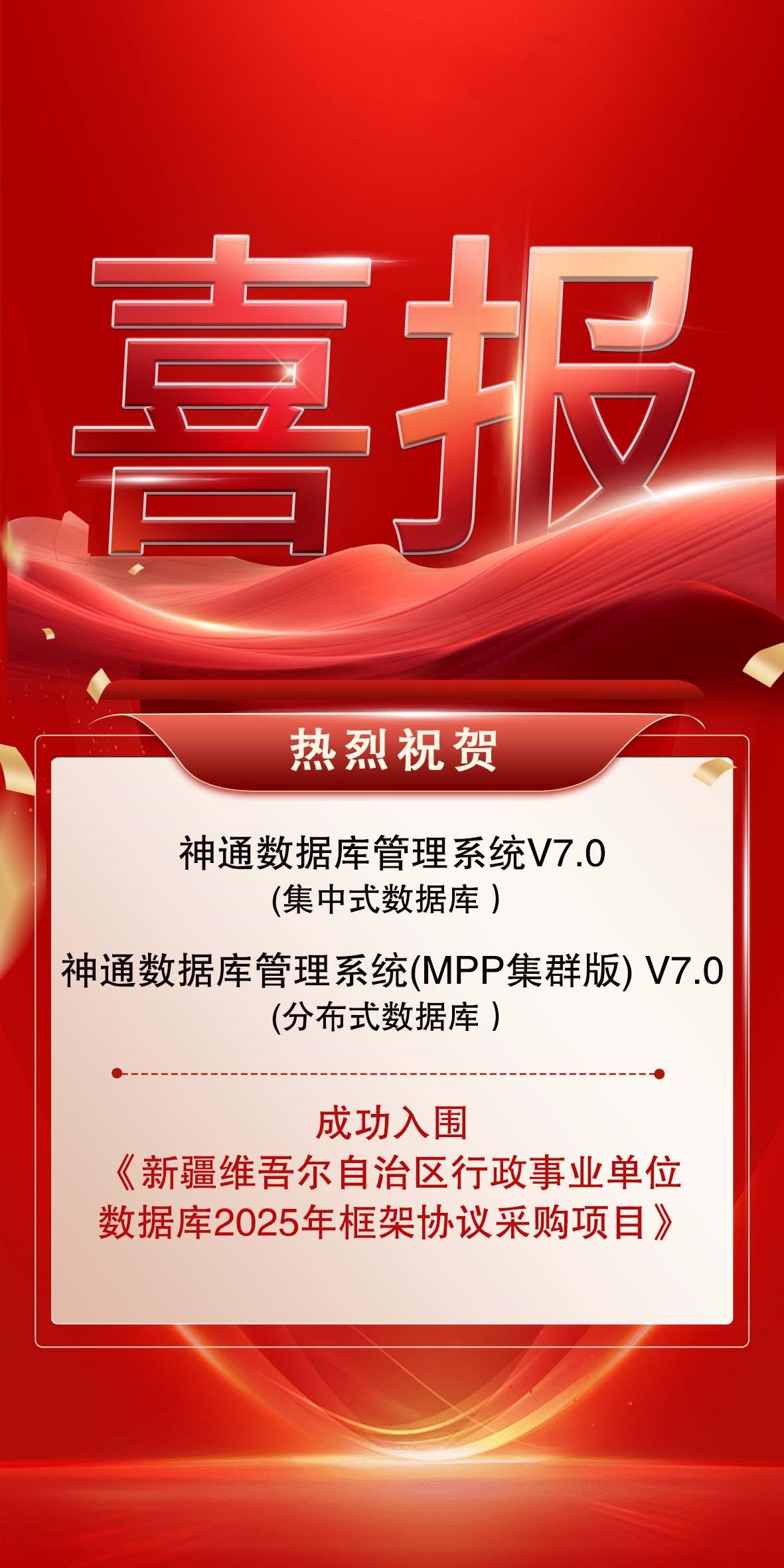 喜讯 神通数据库集中式和分布式产品入围新疆维吾尔自治区行政事业单位数据库2025年框架协议采购项目