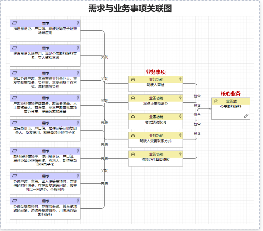 在“三张清单”中,需求分析是基础,聚焦于国家所需、群众所盼、未来所向。要找准最紧迫、最现实、最棘手的问题,作为改革的突破口。因此,重大需求清单与TOGAF框架中的利益相关者及需求分析视图的含义十分契合。