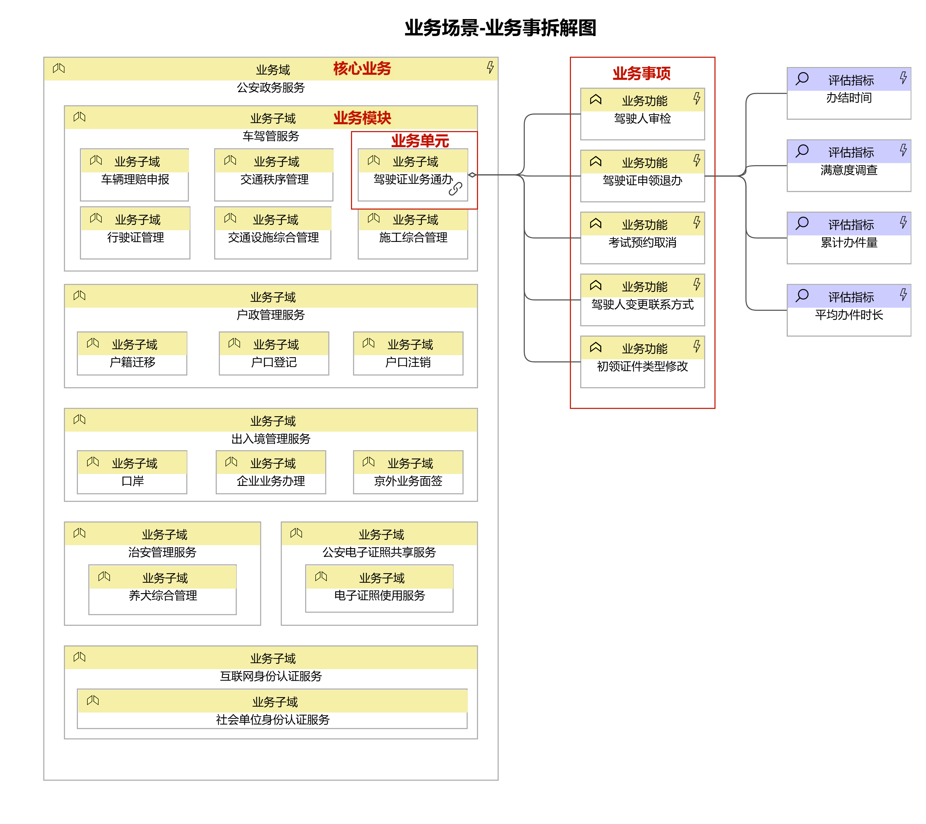 至此步骤即完成了多跨场景的拆解过程,是“V”模型工作法的下行部分。这与TOGAF框架中业务能力、业务流程和业务活动含义相契合。