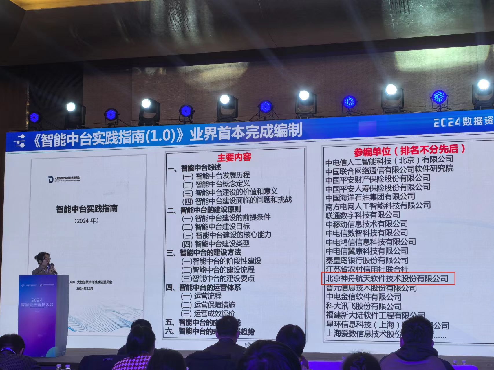 近期,中国通信标准化协会大数据技术标准推进委员会(以下简称:数标委在北京举办了以“数据重塑价值 智能链接未来”为主题的“2024数据资产管理大会”。会上发布了神软公司参与编制的业界首本《智能中台实践指南(1.0版)》,该报告由数标委启动,以智能中台系列标准为参考,总结了智能中台建设实践方法论,为企业智能中台建设提供方法论指引。神软公司基于自主研发的AI平台产品“智汇AI开发平台”的建设和应用实践,进行提炼和总结,为《智能中台实践指南(1.0版)》编制及相关标准化工作贡献了力量。