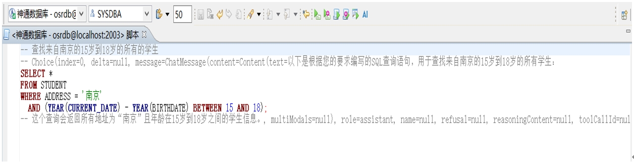为进一步赋能企业高效利用数据资源,神通数据库的DBStudio工具中引入了DeepSeek能力改写了原有的AI智能补全功能,使用者能够以对话的便捷方式,将自然语言无缝转化为SQL及复杂查询语句,这一功能彻底扭转了以往数据库交互依赖专业编码的局面,升级为“全民对话”的模式,大大降低了企业数据驱动能力的技术门槛。