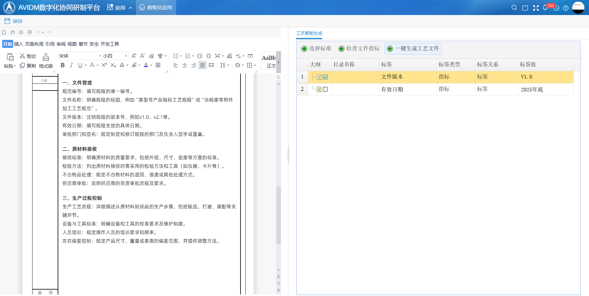 AVPLM系统已具备科研生产智能问答、文档智能生成、文档智能审查、工艺智能生成等智能化场景应用能力。